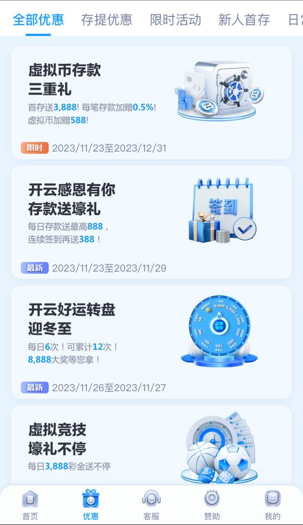 • 168体育 是目前同类平台当中给予用户最大优惠的服务供应商。168体育 有许多的活动,例如首存优惠、充值奖励、VIP等级活动、每周/月返利以及一些挑战活动等,所有活动注册后可以在网站内的“优惠”专区看到,通过网页或应用即可参与。如有疑问,可联系网站内24小时在线客服进行交流沟通。